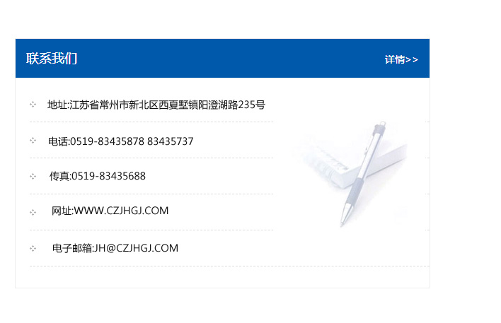 傳真:0519-83435688    郵編:213135    網址:WWW.czjhgj_com.htbearing.com    電子郵箱:JH@czjhgj_com.htbearing.com